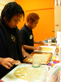 Founders' students, Stevie and Justin, baking cookies. The students were tutored in their schoolwork with emphasis on math, science and social skills.